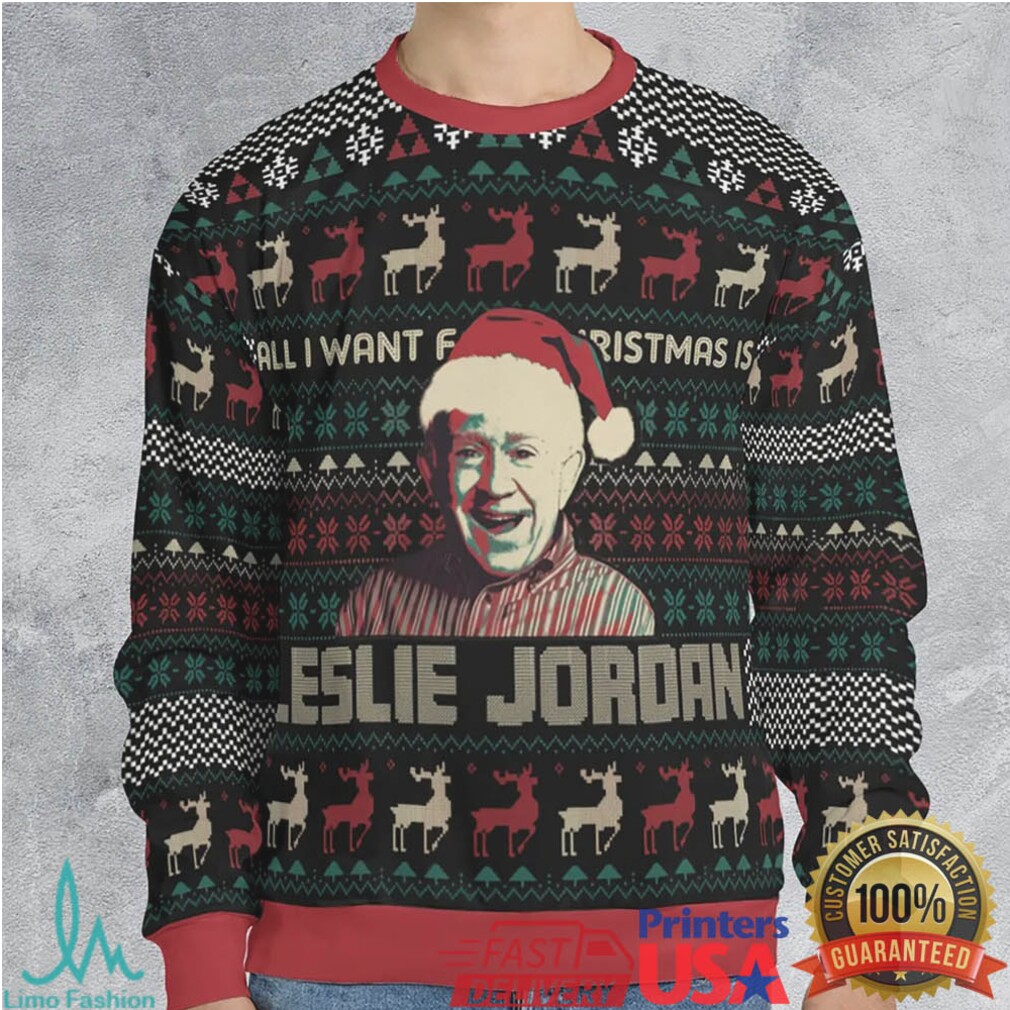 Is there anything you want more for Christmas than Leslie Jordan? Celebrate the holidays with a laugh! This “All I Want For Christmas Is Leslie Jordan” Ugly Christmas Sweatshirt is the perfect way to show off your love for the iconic actor and comedian. It’s more than just a festive garment; it’s a tribute to a beloved entertainer, perfect for spreading joy and laughter throughout the holiday season.