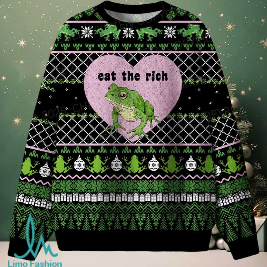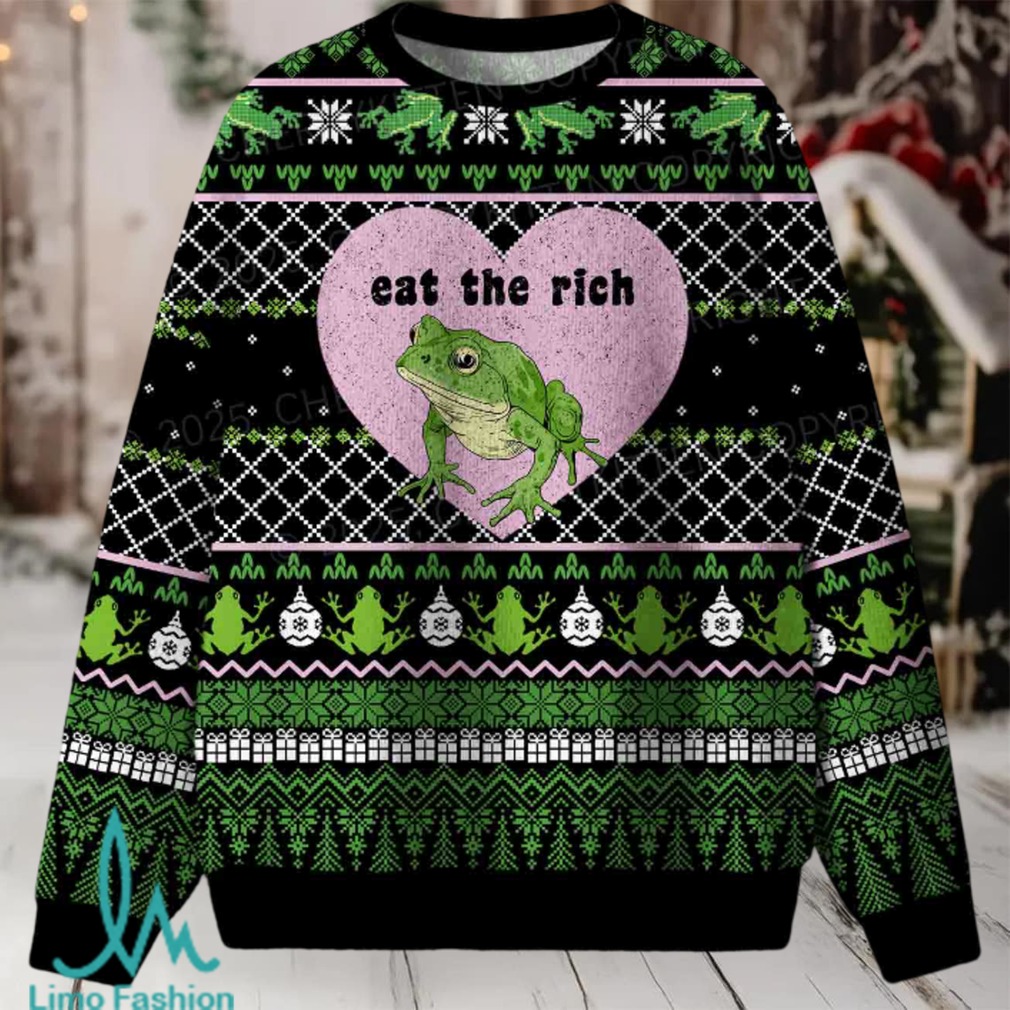 Ready to serve up some holiday humor with a side of social commentary? This Eat The Rich Frog Christmas Knit Sweatshirt is here to spice up your festive season. It’s a bold and quirky statement piece, perfect for those who like their Christmas with a pinch of rebellion and a whole lot of laughter. Imagine the conversations you’ll spark at your next holiday gathering – it’s not just a sweatshirt; it’s a talking point. For those who love to blend humor with a message, this is your go-to Christmas gear.