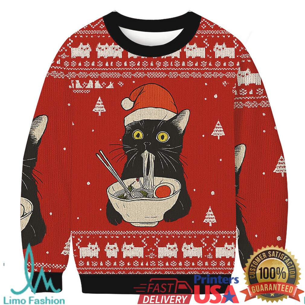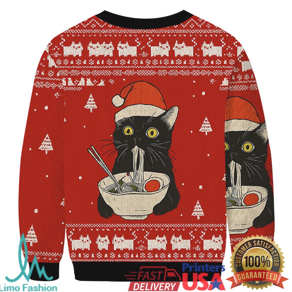 What Makes This Funny Taking a Cat to Eat Ramen Christmas Ugly Sweatshirt Epic