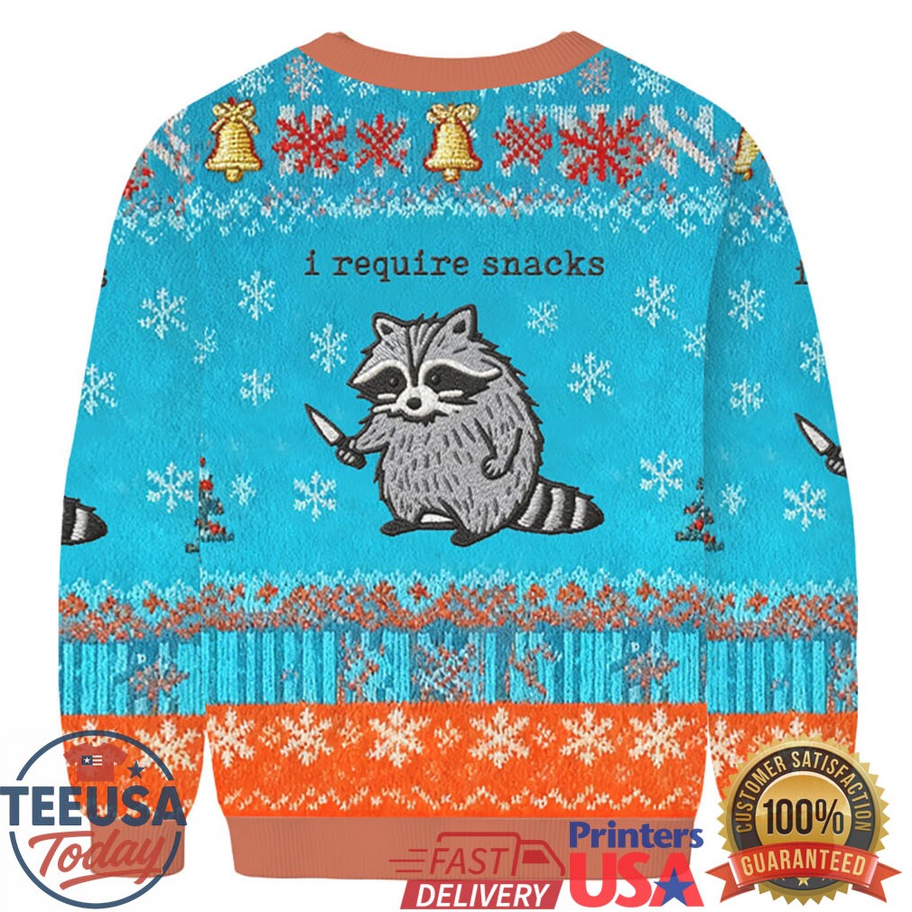 What Makes This I Require Snacks Funny Raccoon Christmas Ugly Sweatshirt Epic?