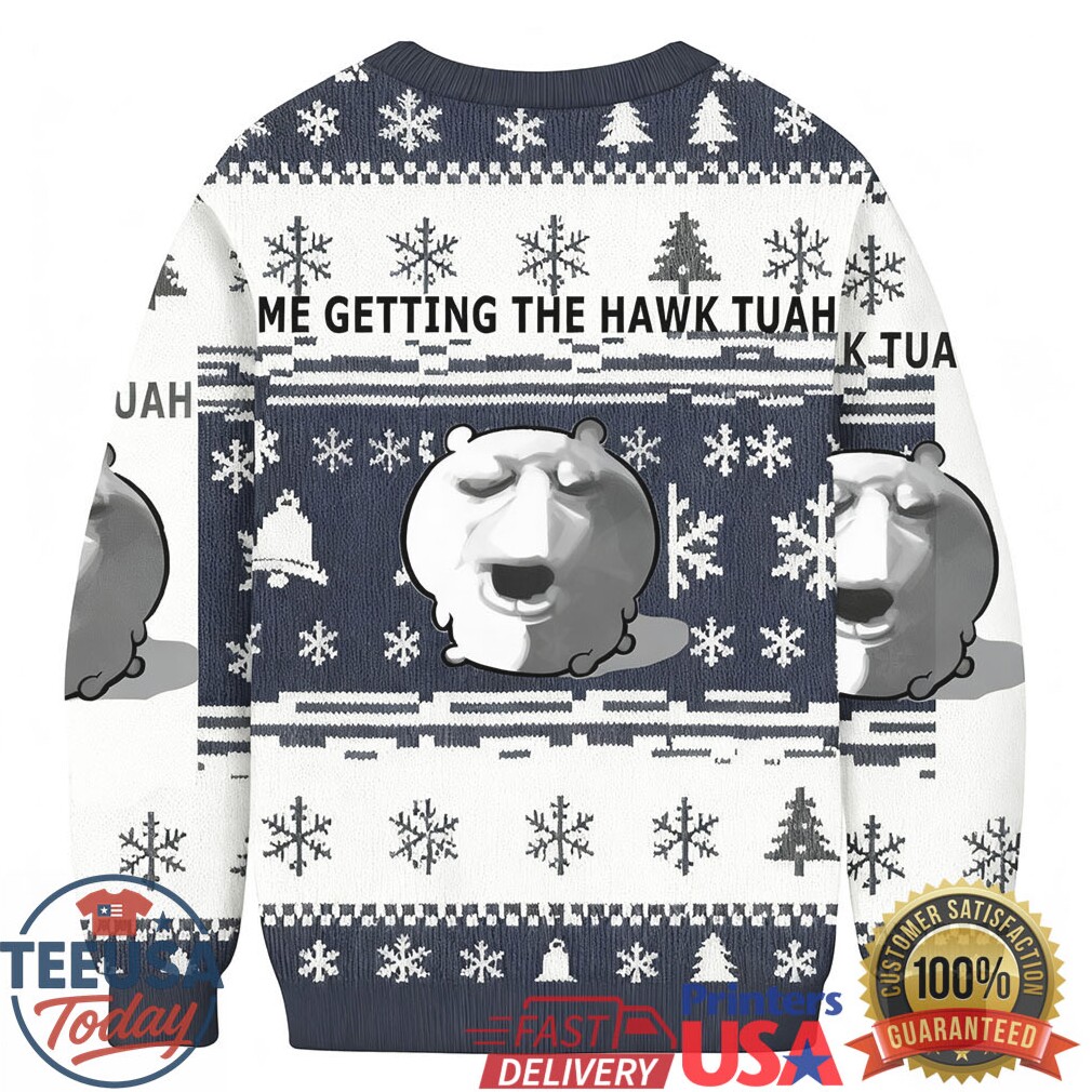 The "Me Getting The HAWK TUAH Funny Meme Ugly Sweatshirt" is absolutely perfect for Gen Z and millennial meme lovers, internet culture enthusiasts, and anyone who enjoys current, witty humor. It makes an incredible gift for your funniest friend, the sibling who always sends you the latest viral videos, or as the star attraction at an ugly Christmas sweater contest. Imagine wearing this at a casual holiday get-together, a friend’s Christmas party, or even during a festive online gaming session. Pair it with your favorite casual bottoms and prepare for the laughs! ().