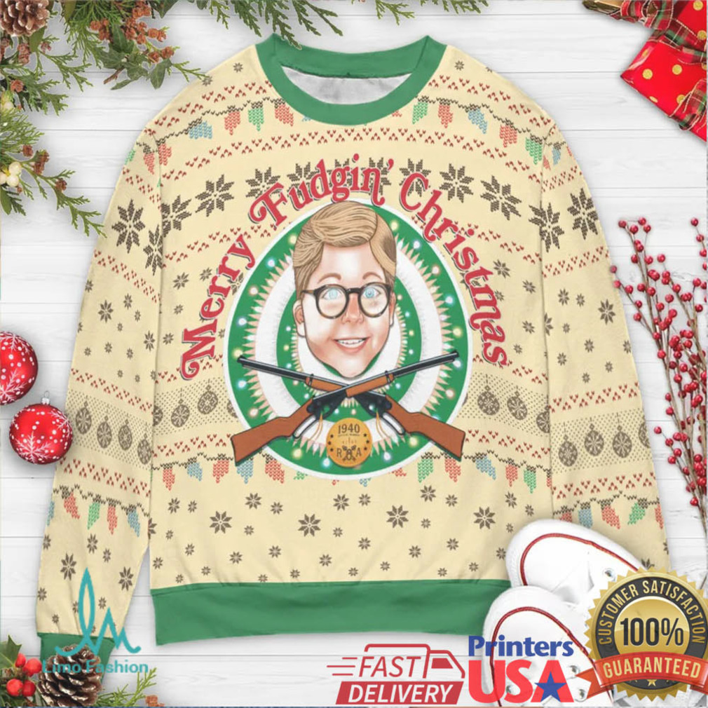You’ll shoot your eye out with holiday cheer when you wear this Merry Fudgin’ Christmas A Christmas Story Ugly Christmas Sweatshirt! This hilarious sweatshirt combines the beloved movie “A Christmas Story” with the festive spirit of Christmas. Perfect for fans of the film, this sweatshirt is guaranteed to bring smiles and start conversations at any holiday gathering.