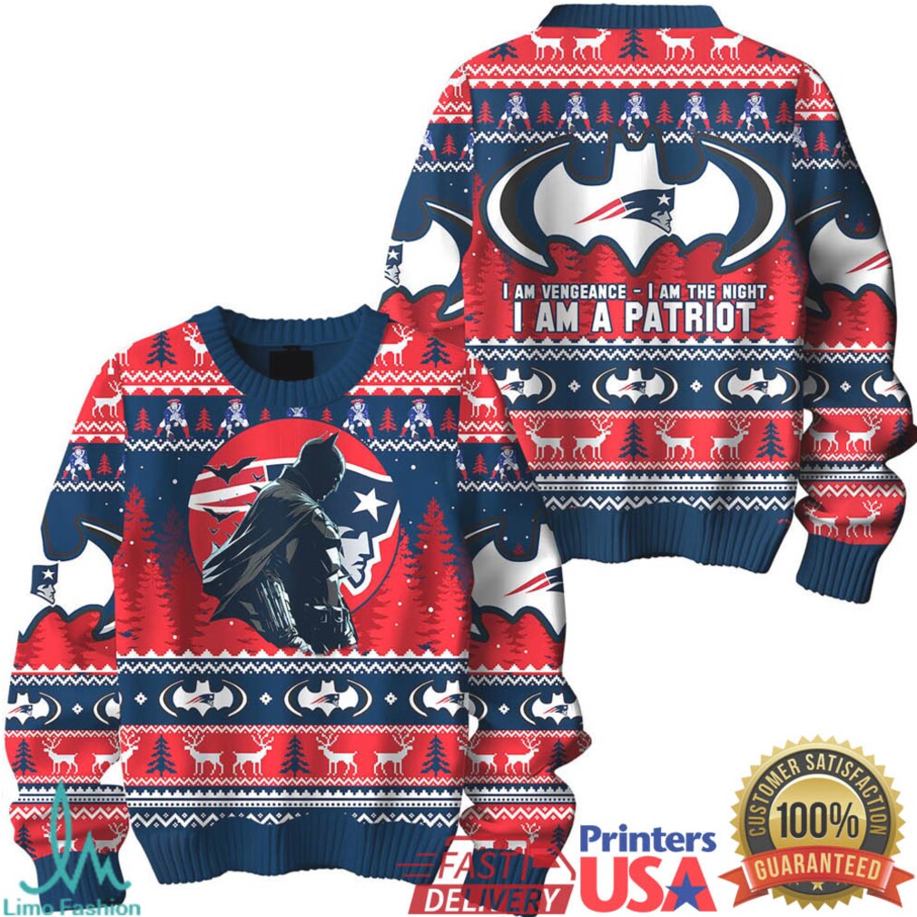 Combine your love for the New England Patriots, Batman, and the holidays with this unique Christmas Ugly Sweater! It’s not just festive apparel; it’s a statement piece, perfect for showing off your fandoms in a fun and quirky way. If you’re a die-hard Patriots fan who also appreciates the Dark Knight, this sweater is the ultimate holiday mashup.