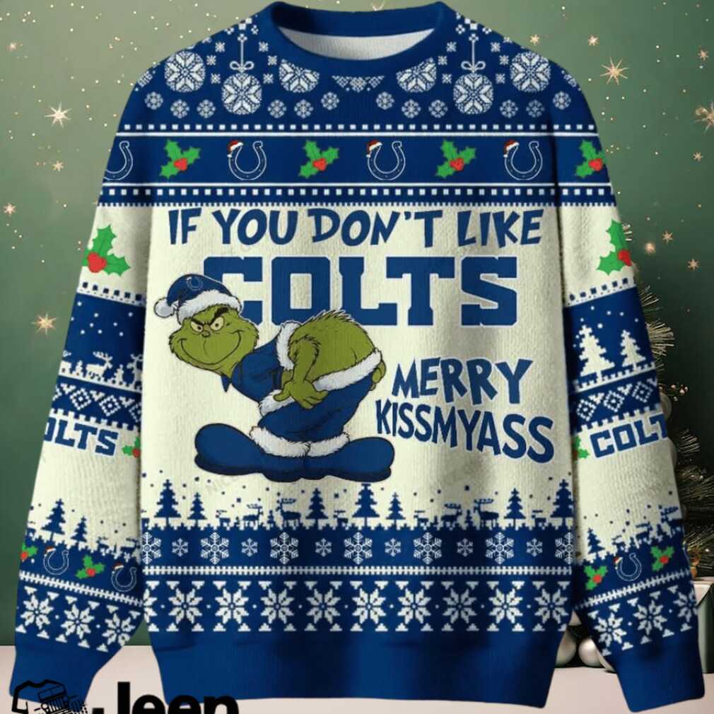 Ever felt the holiday spirit mixed with a fierce loyalty to your team? This isn’t just another Christmas sweater; it’s a bold declaration for every true Indianapolis Colts fan. The ‘NFL Indianapolis Colts If You Don’t Like Colts Merry Kissmyass Ugly Sweater’ is designed to make a statement, combining festive cheer with an undeniable dose of fan pride and humor. Perfect for game days during the holidays, ugly sweater parties, or simply showing off your Colts devotion, this unique piece guarantees smiles and possibly a few envious glances from rival fans. Get ready to celebrate the season with a touch of Colts spirit that’s as unyielding as your team loyalty.