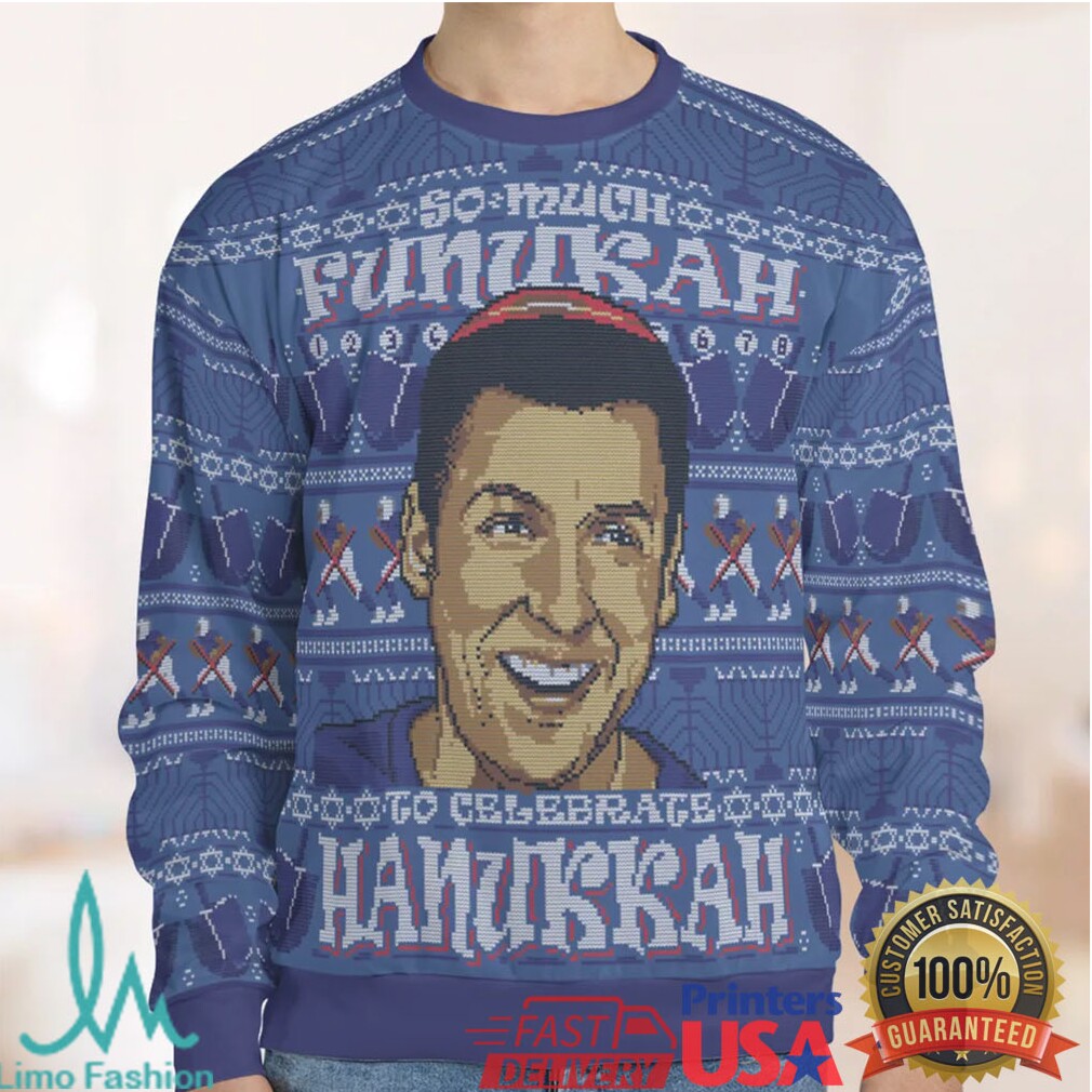 This Funukah Christmas sweater is perfect for anyone with a vibrant personality, a great sense of humor, and a desire to make the holidays extra joyful. Wear it to ugly Christmas sweater contests, festive family reunions, or when you want to bring a little extra sparkle to your everyday winter wardrobe. It also makes a fantastic, unexpected gift for friends and family who love to celebrate with enthusiasm and a touch of lighthearted fun.
