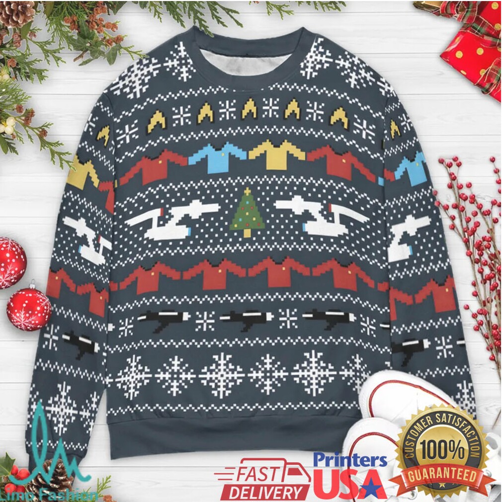 This Vulcan Greetings Star Trek Ugly Christmas Sweatshirt is a must-have for any fan. The design features a classic Vulcan salute with festive holiday elements, making it an instant conversation starter. Made from a soft, cozy cotton blend, it’s comfortable enough for all-day wear, whether you’re binge-watching Star Trek episodes or attending an intergalactic holiday party. Available in a range of sizes, you’ll find the perfect fit to boldly go where no ugly Christmas sweater has gone before. The vibrant print